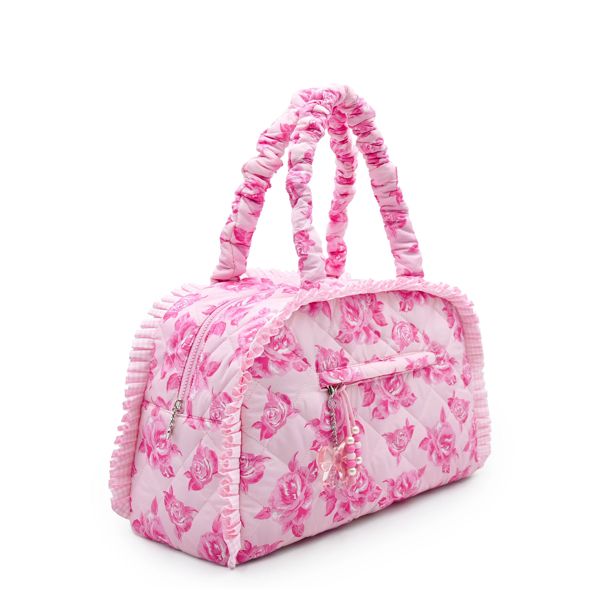 Rose Print Ruffle Quilted Medium Duffle Bag