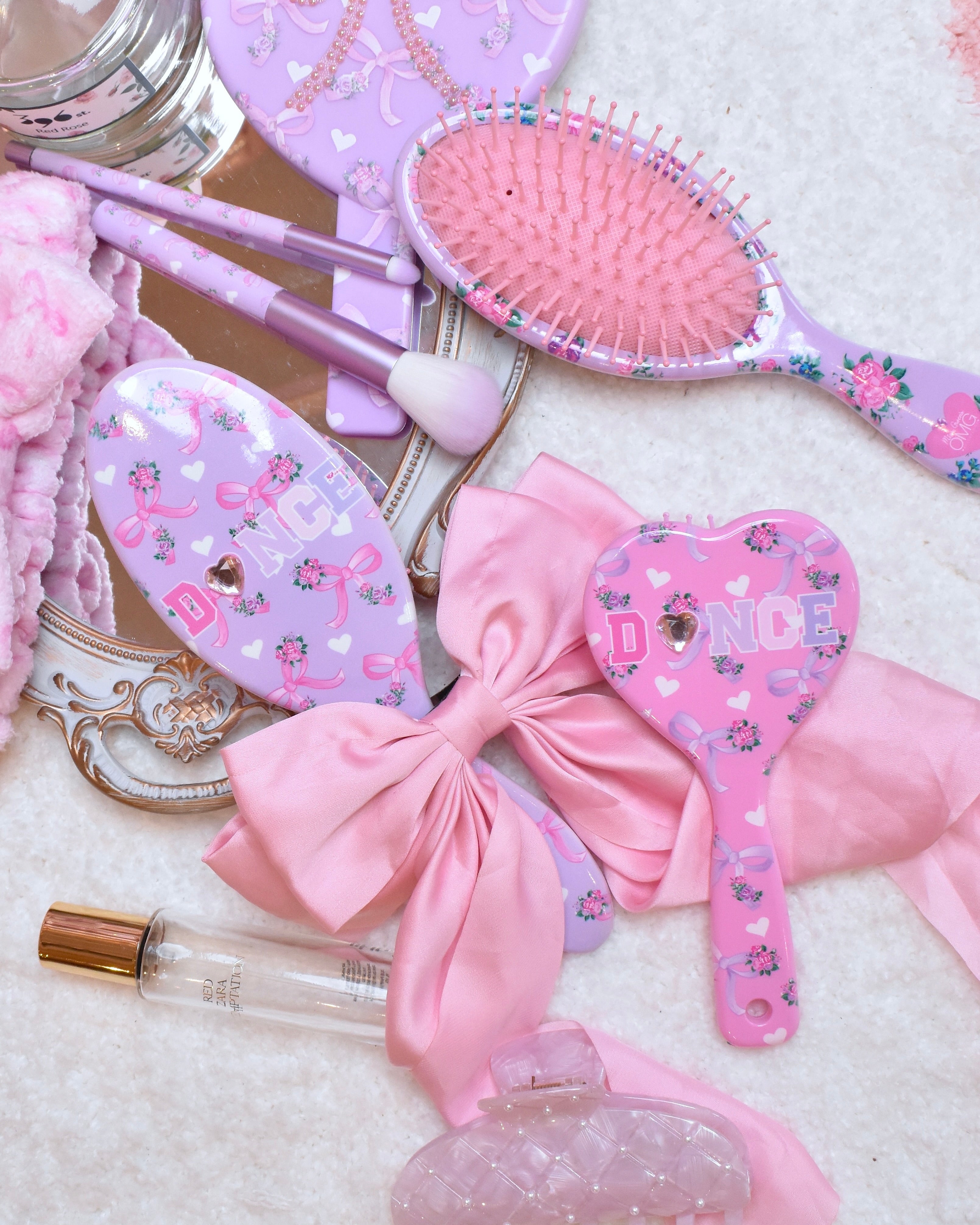Made for detangling & styling, this floral bow printed, 'DANCE' paddle brush will become their new favorite accessory to keep on their vanity, throw in their beauty bag, or dance bag!
