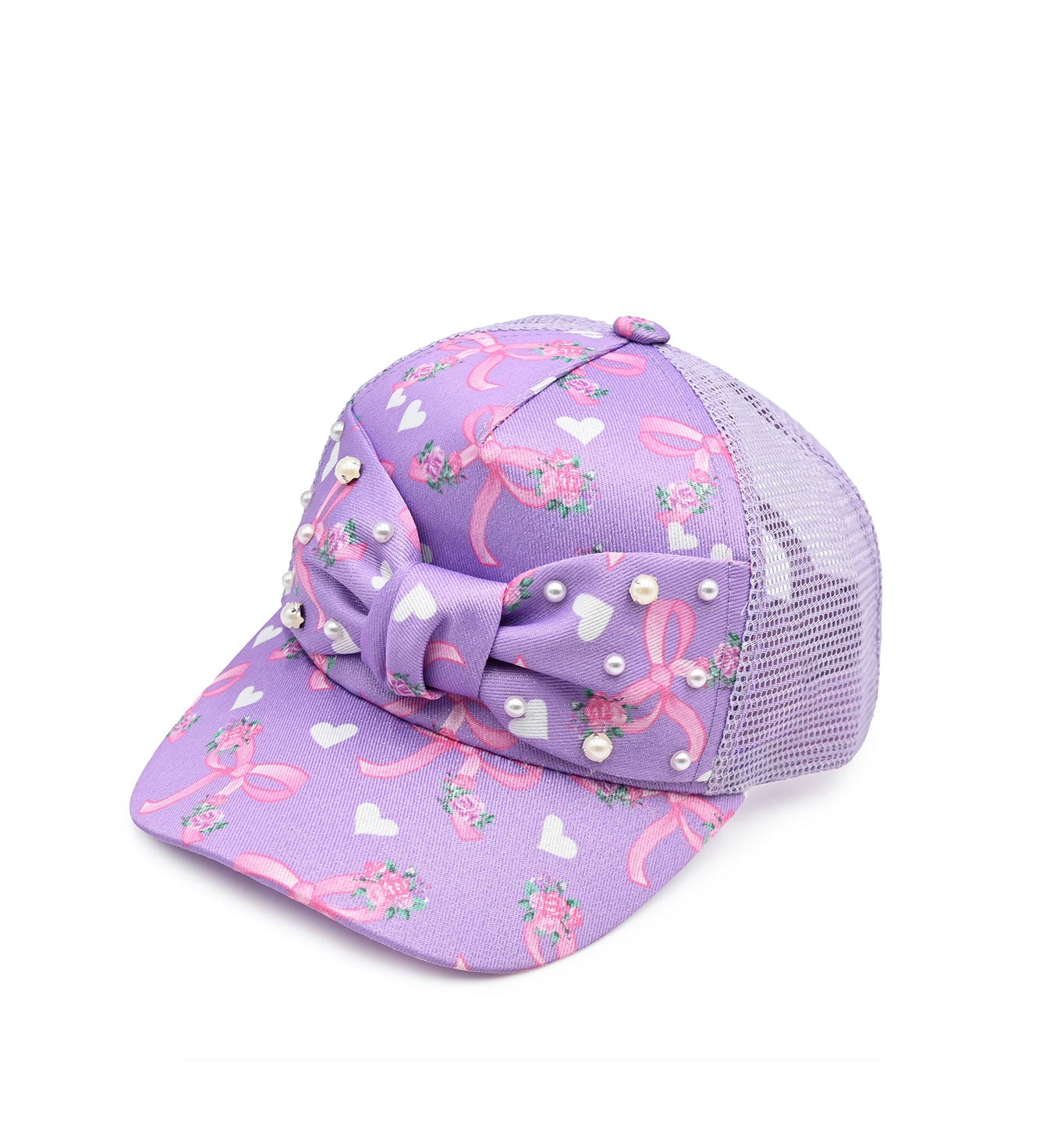 Lavender Floral & Bow Printed Trucker Hat