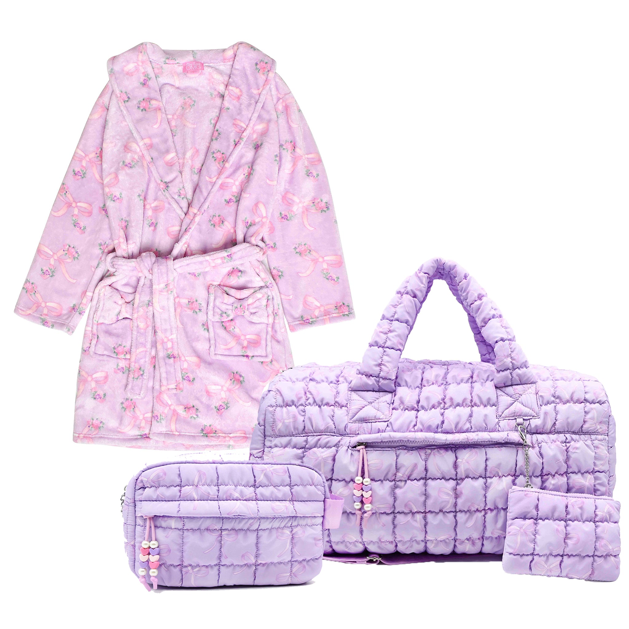 Cozy Robe Purple Floral Bow Weekender Gift Set