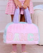 This dance bag is ready to steal the spotlight! Between color blocked pastel plush, and glittery varsity-letter 'DANCE' patches, this duffle will be your dancing diva's top choice for toting their essentials on those long practice days and competition weekends!