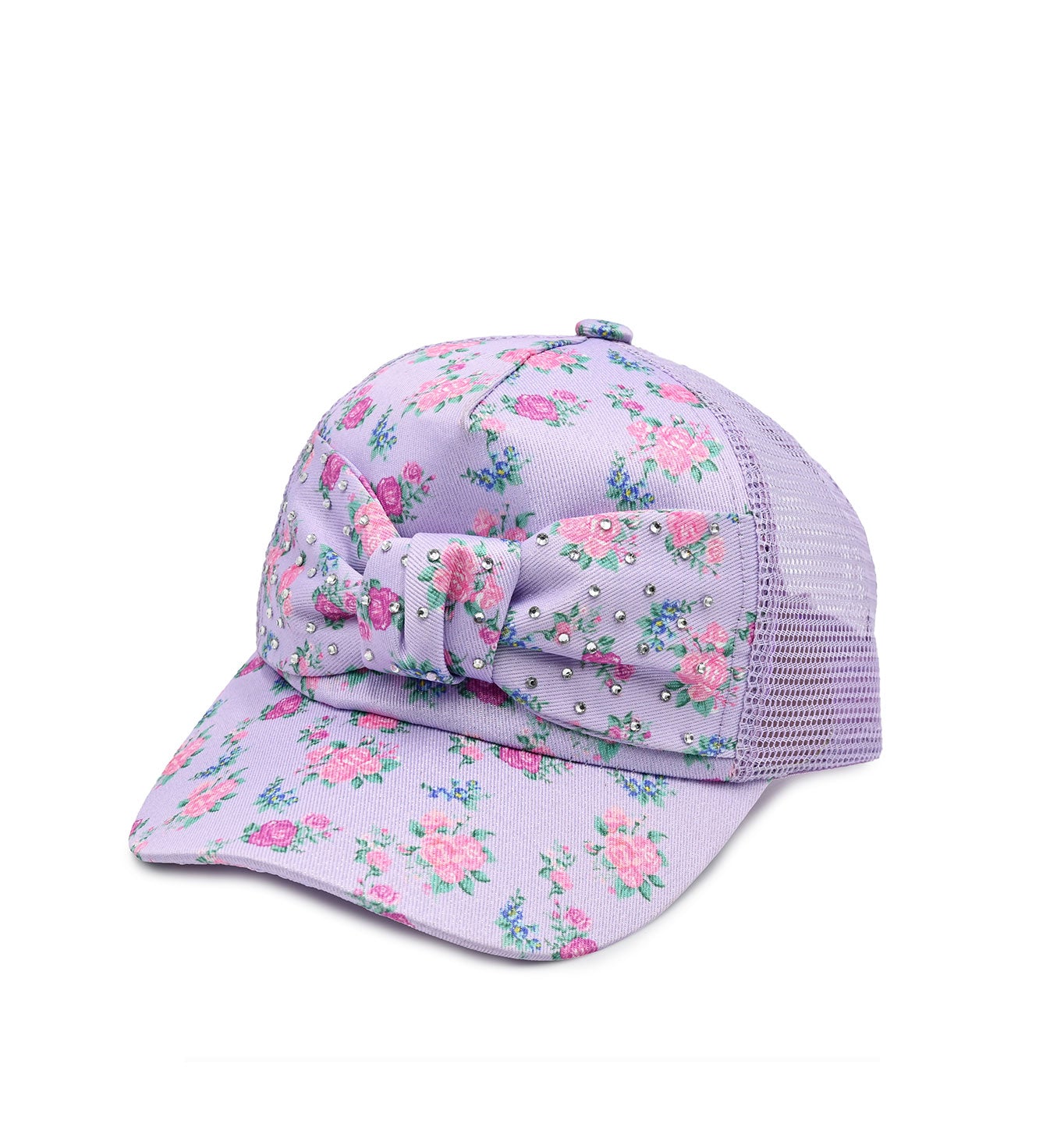 Your mini will be turning heads in our NEW trucker hat! Featuring a lavender ditzy floral printed front panel - adorned with a matching rhinestone bow, a mesh back for breezy comfort, and an adjustable size strap for the perfect fit!