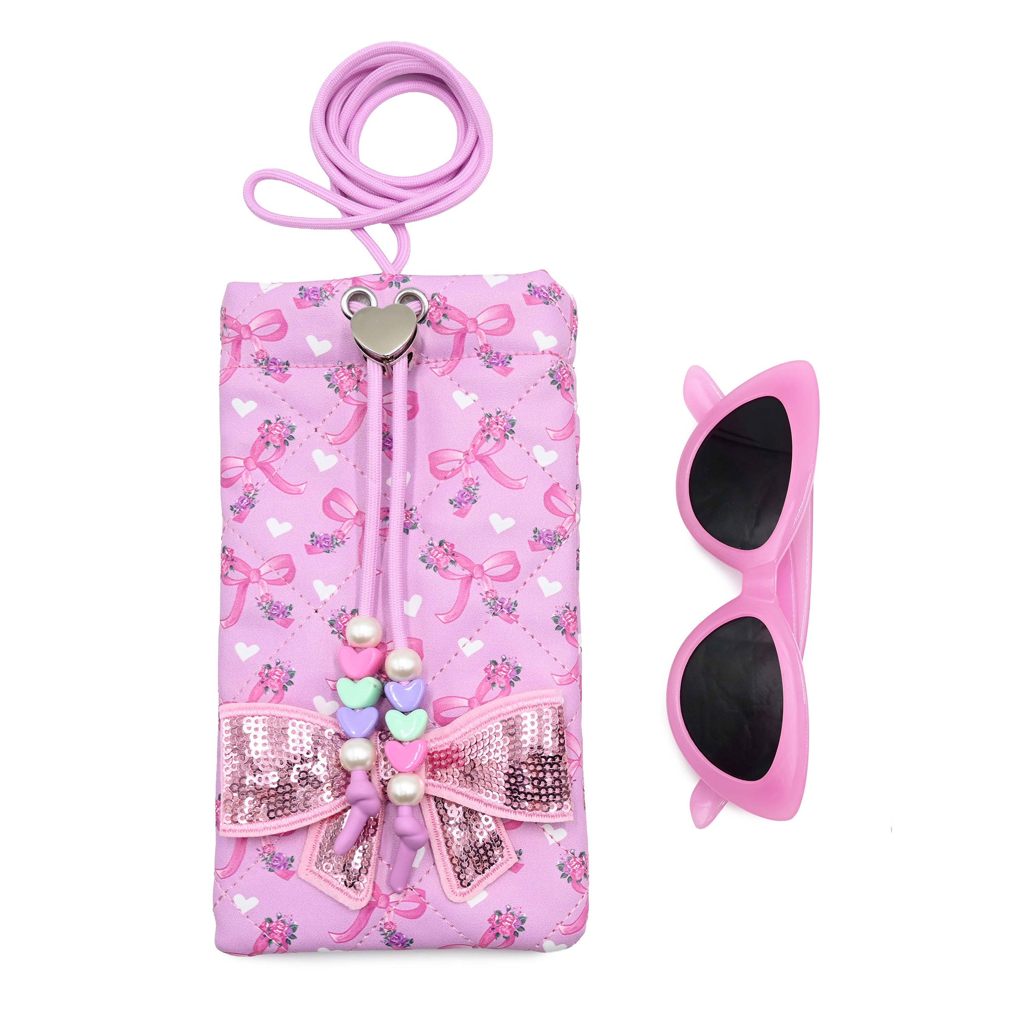 Bow Floral Printed Drawstring Case and Sunglasses