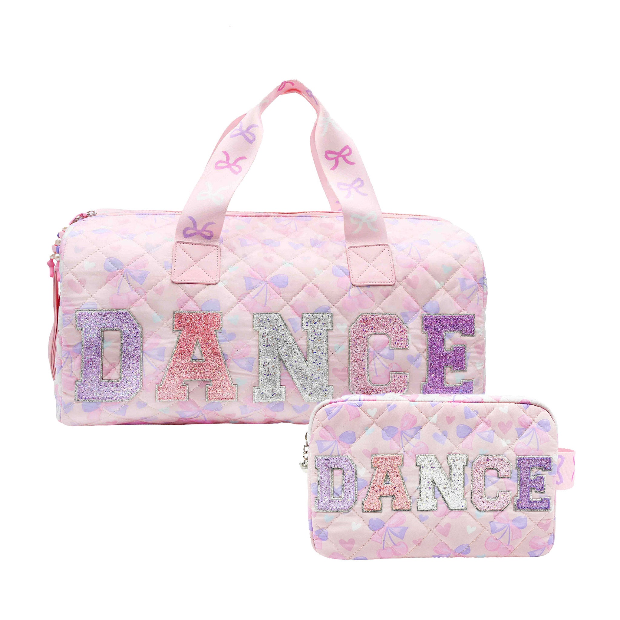 'DANCE' Cherry Bow Printed Quilted Large Duffle Bag