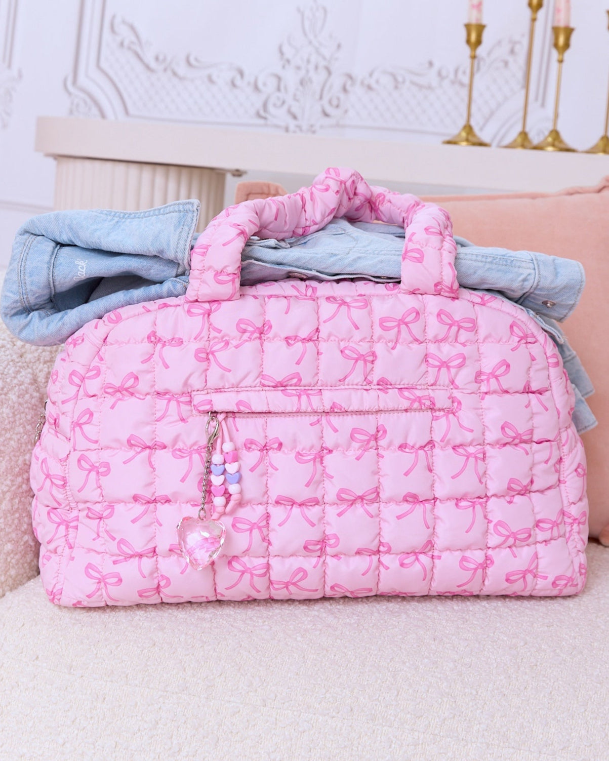 Quilted Scrunchies Bow Printed Medium Duffle Bag