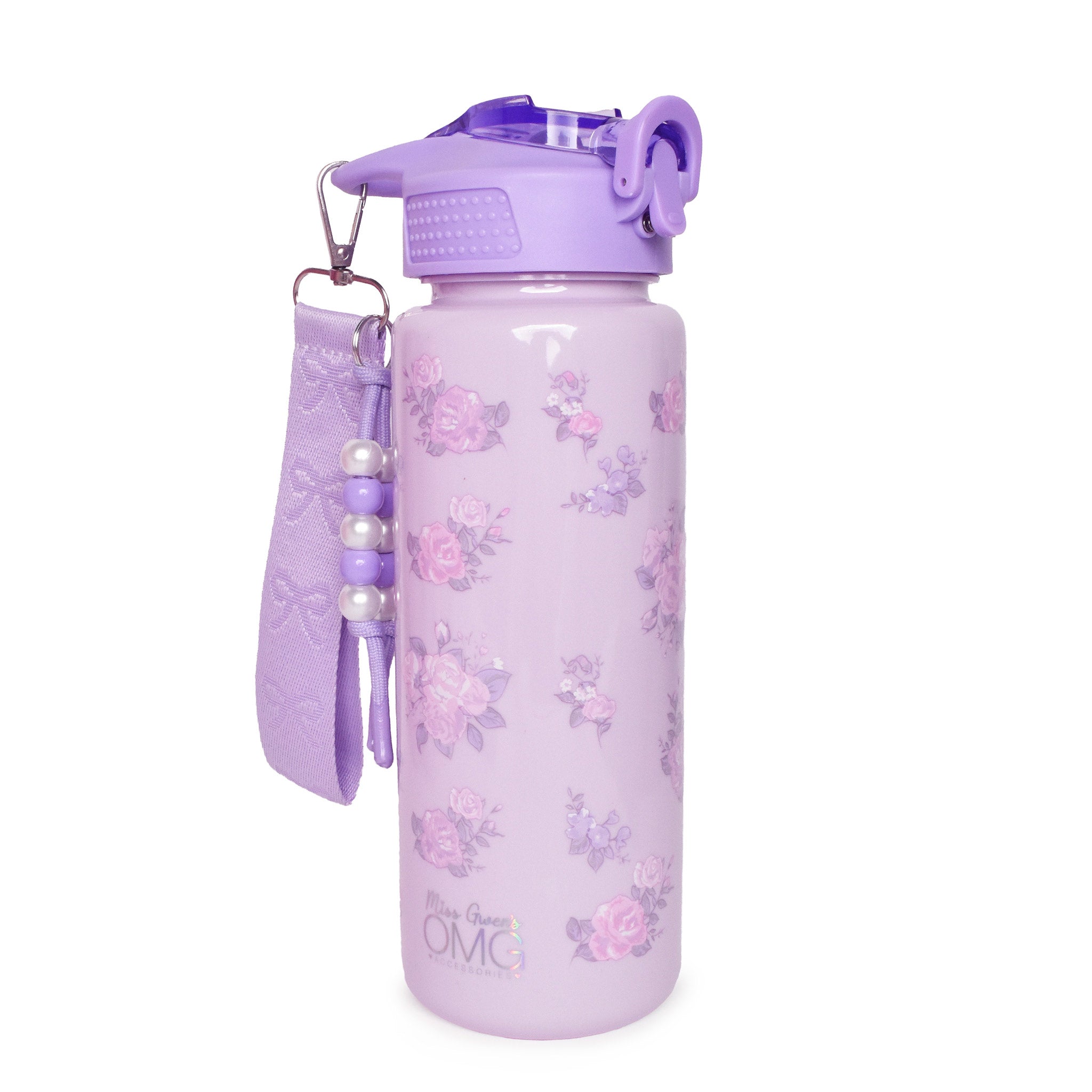 Leopard & Rose Printed Plastic Water Bottle with Wristlet