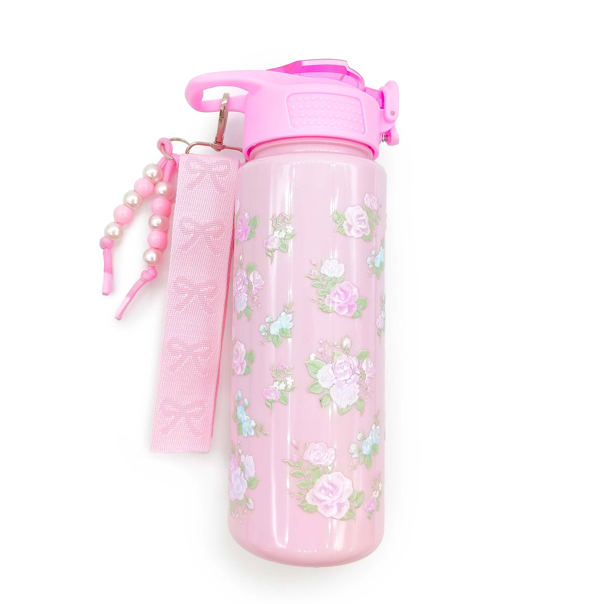 Say hello to our NEW ditzy floral printed water bottle! Perfect for sports, on-the-go travel, and more, it's the hydration accessory of your mini's dreams! Featuring a coordinating detachable bow printed wristlet strap/charm with beaded embellishments for easy (and cute) carrying, and a lockable closure to keep your little's straw covered and clean!