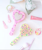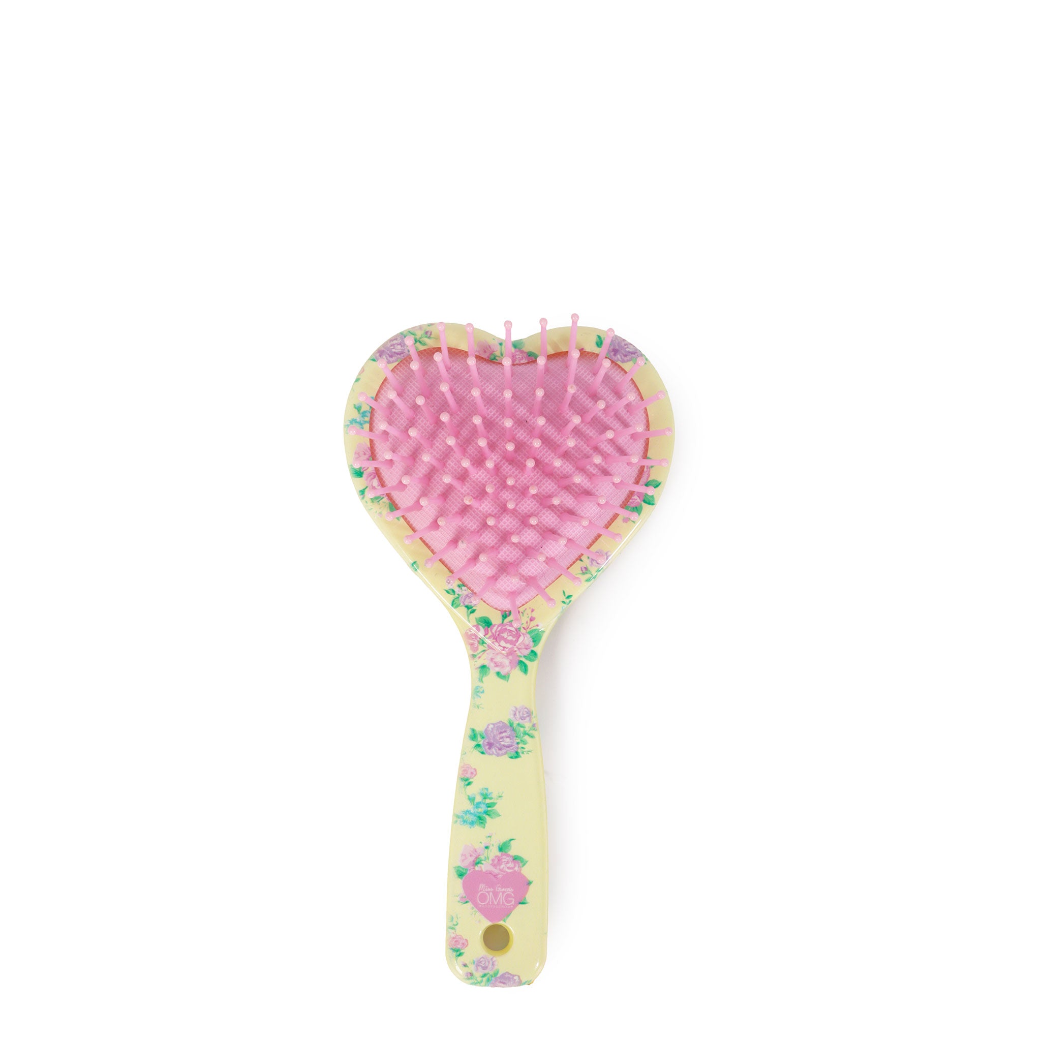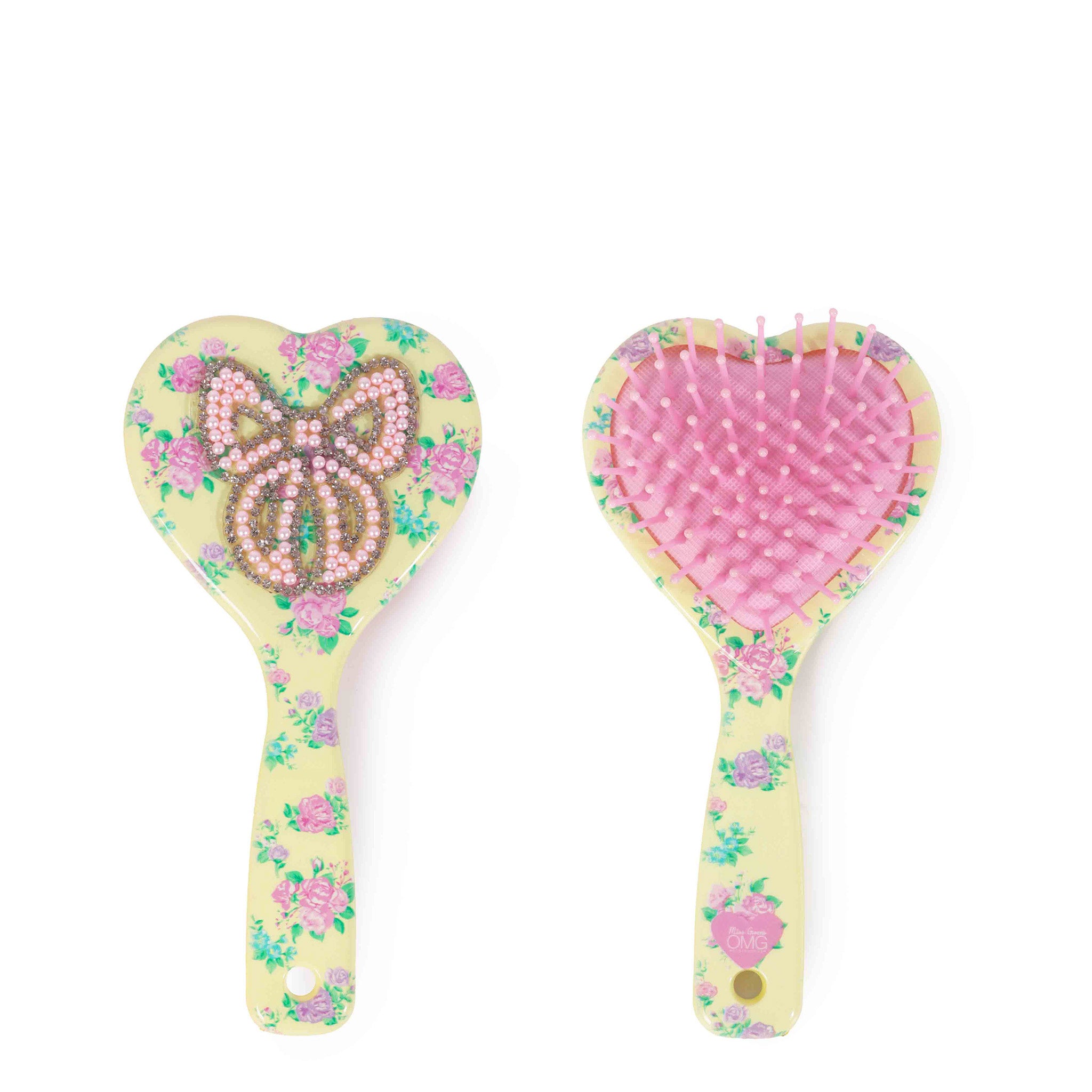 Dazzle and detangle with this yellow floral printed heart-shaped mini hair brush. Topped with a pearl bow appliqué, it's petite size is perfect for little hands to get out those stubborn knots either at home or on the go! Providing all the color and wonder your little one craves, haircare has never been this fun!